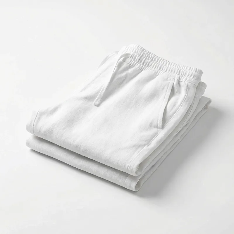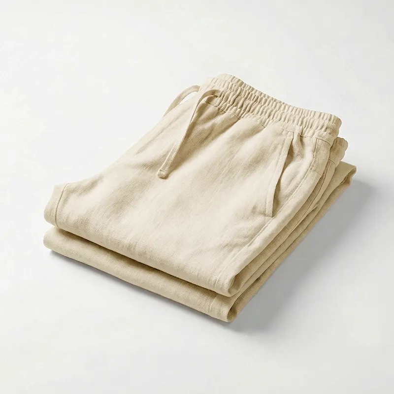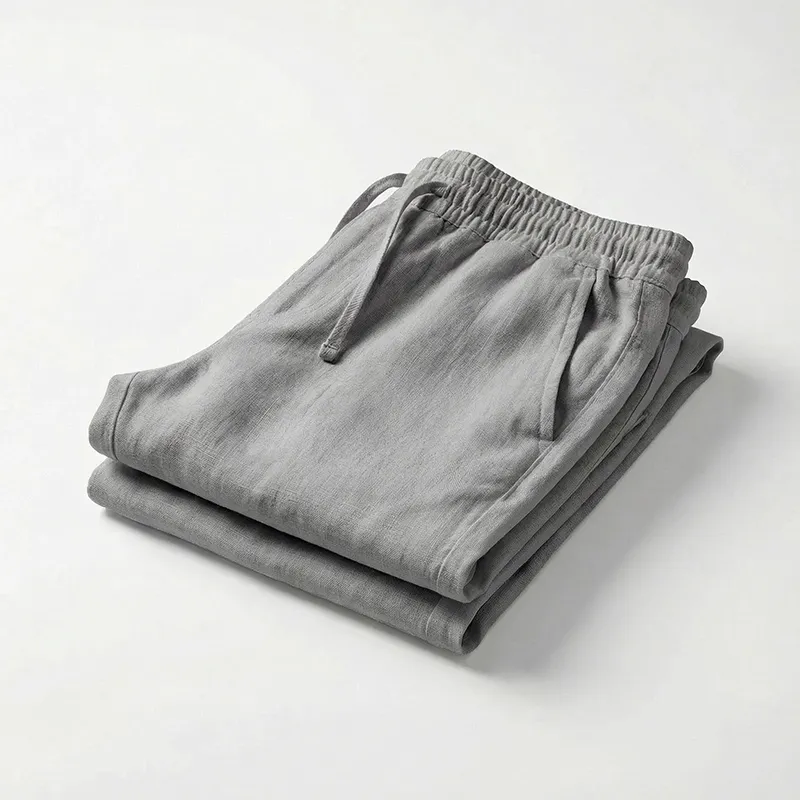 Atmungsaktive Baumwollhose für Herren mit weitem Bein aus Leinen