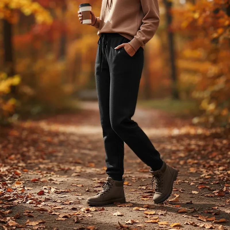 Wirklich warm und bequem an kühlen Tagen. Das Zugband hält alles an seinem Platz und ich kann meine Schlüssel sorgenfrei in die Taschen stecken. Auch fürs Fitnessstudio super.