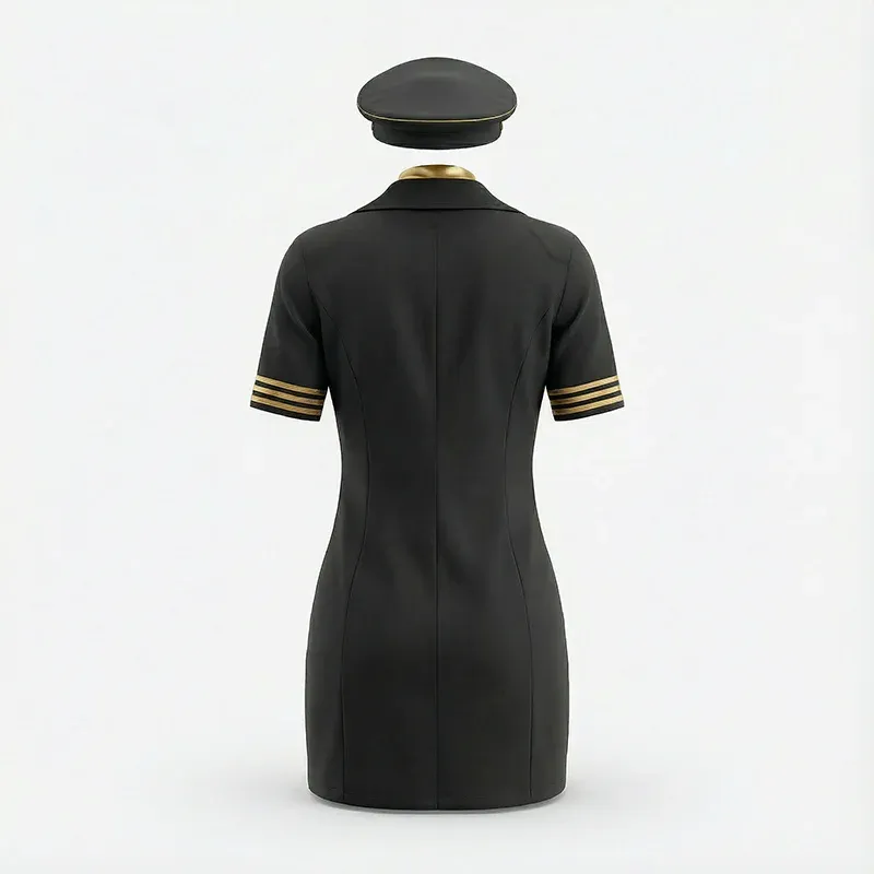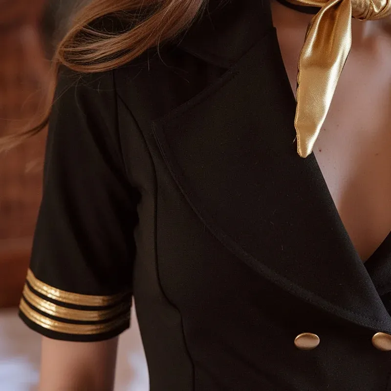 Freche Stewardess Uniform Sexy Schwarzes Flugbegleiterin Outfit