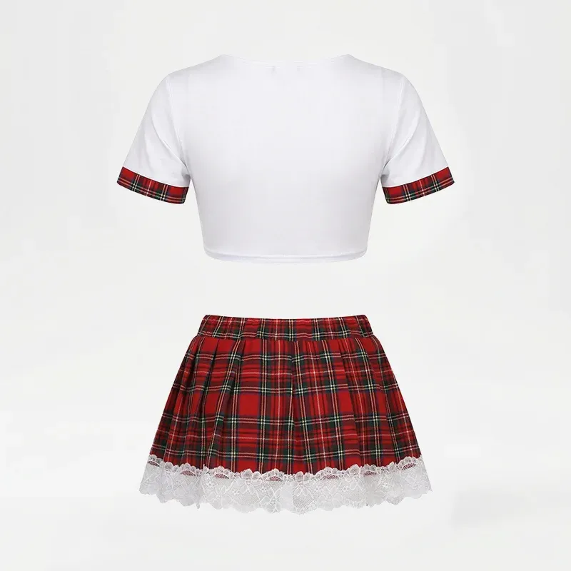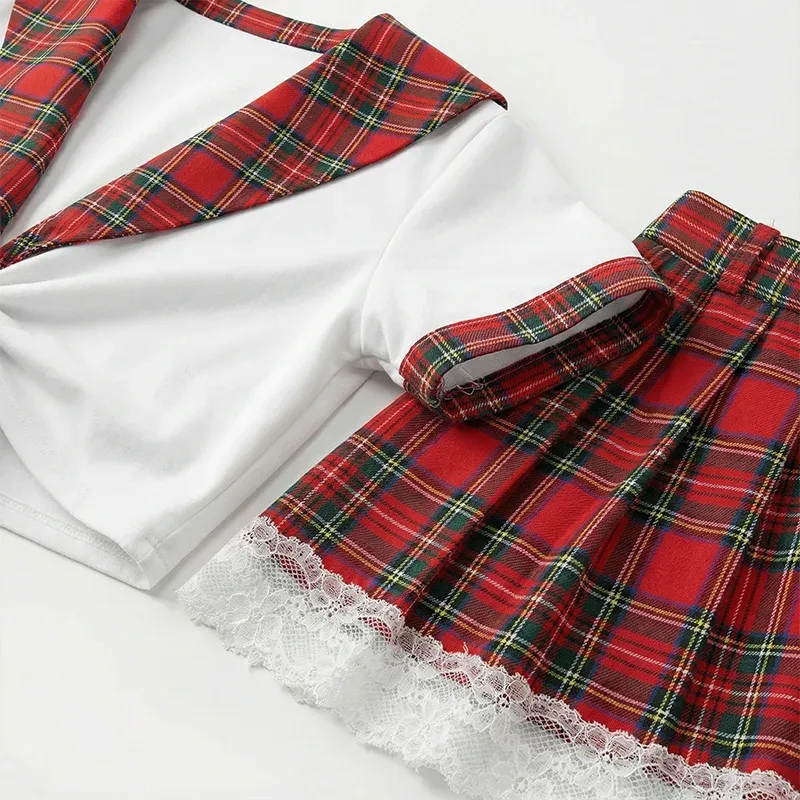 Sexy Cosplay Schulmädchen Kostüm Karo Outfit Dessous
