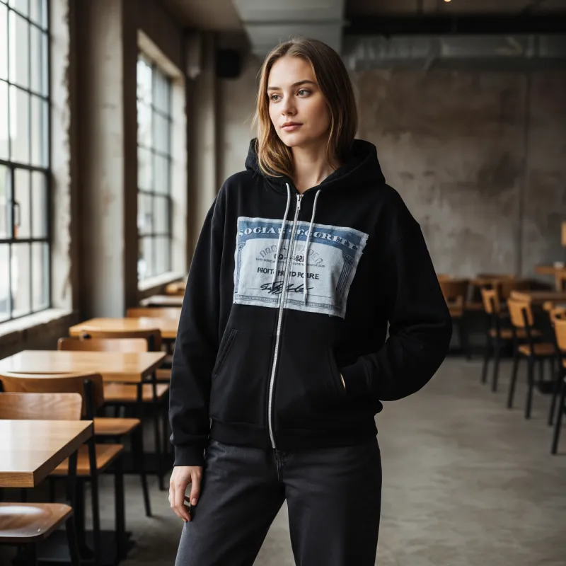 Jake T.Ich mag, wie lässig der Hoodie aussieht! Passt super und die Taschen sind groß genug für mein Handy und Snacks. Der Reißverschluss läuft jedes Mal einwandfrei.