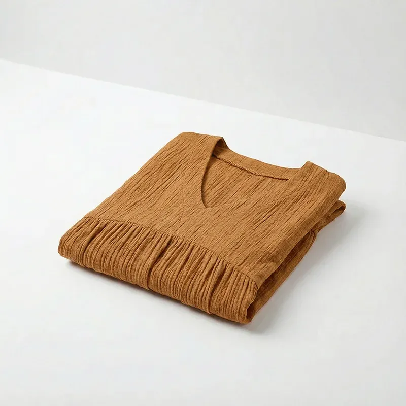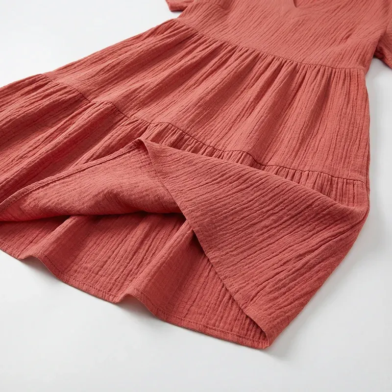Ich habe dieses Kleid zu einem Grillfest getragen und selbst nach ein paar Essensflecken sah es noch frisch aus. Das Material ist erstaunlich strapazierfähig für Sommertage.