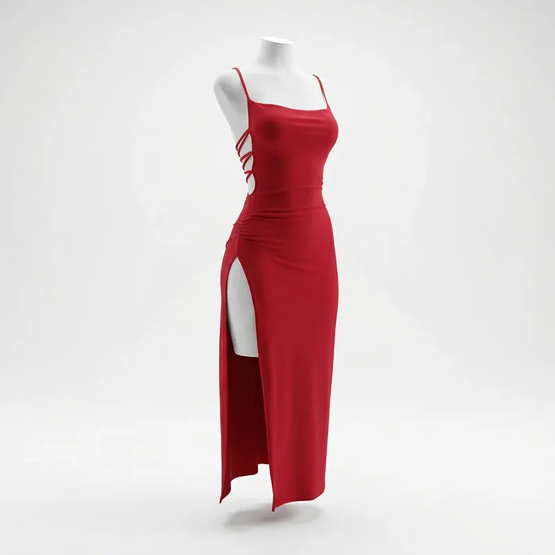 Dieses Kleid vereint Extravaganz mit Eleganz und ist ideal für einen Abend aus. Das rückenfreie Design sorgt für eine verführerische Note und betont die gesamte Ausstrahlung. Spaghettiträger verleihen eine zarte und feminine Silhouette, die die auffälligen Details wunderschön ausgleicht. Gefertigt aus hochwertigen Materialien garantiert es Komfort den ganzen Abend über. Kombinieren Sie das Kleid mit eleganten High Heels und Accessoires, um den fesselnden Look zu vervollständigen.