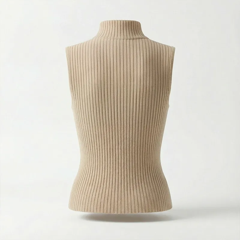 Damen Strick-Tanktop Ärmellose Rollkragen-Pulloverweste