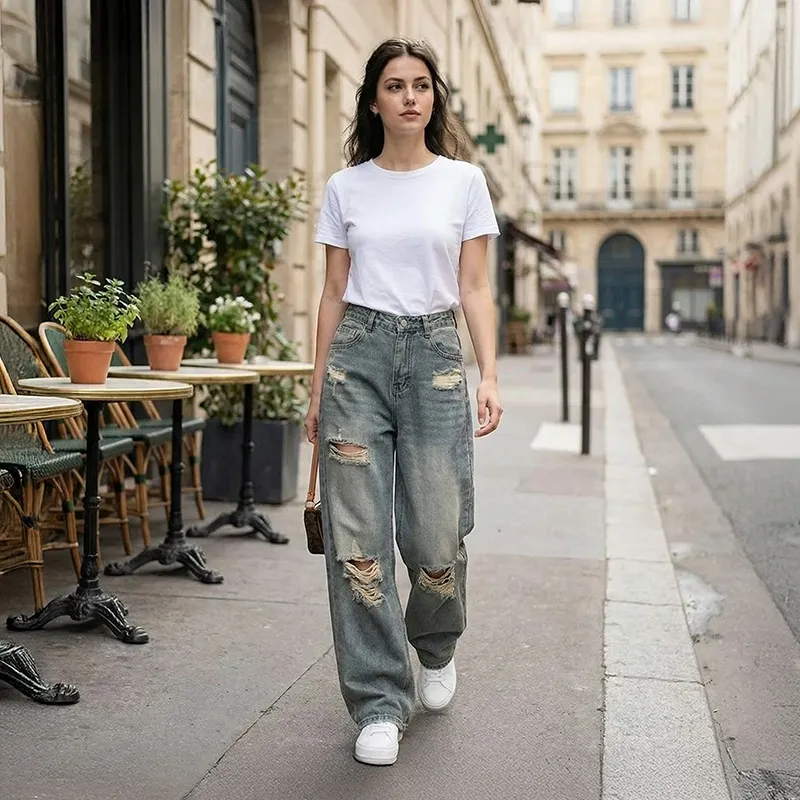 Diese Jeans bieten einen lockeren Sitz, perfekt für den Alltag mit Leichtigkeit. Das High-Waist-Design betont die Figur und bleibt dabei den ganzen Tag bequem. Weiches Denim-Material sorgt für Bewegungsfreiheit – egal ob im Alltag oder bei Aktivitäten. Modische Used-Details verleihen Persönlichkeit ohne auf Langlebigkeit zu verzichten. Kombiniere sie mühelos mit Jacken, Oberteilen oder Sneakers für einen vielseitigen Tages-Look.