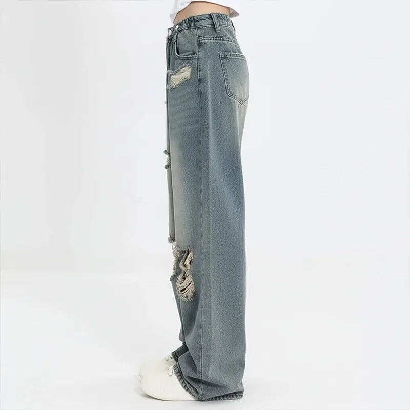 Damen Ripped Jeans Lockerer Schnitt High Waist Hose