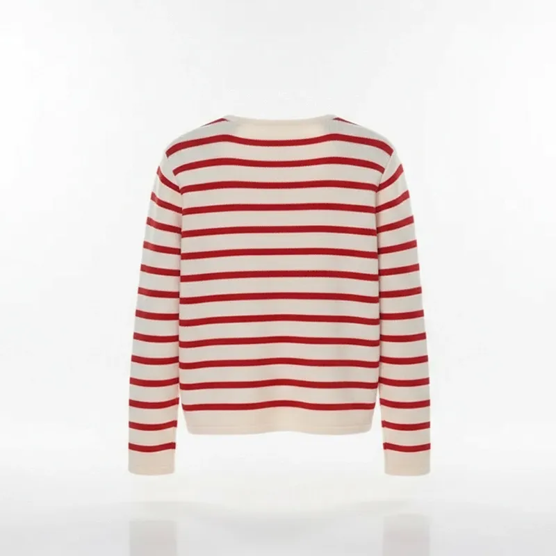 Diese Strickjacke bietet zeitlose Streifen, die jedem Alltagslook Eleganz verleihen. Der weiche Stoff fühlt sich angenehm auf der Haut an und sorgt den ganzen Tag für Komfort. Die langen Ärmel bieten an kühleren Tagen Wärme und machen das Layering mühelos und stilvoll. Das vielseitige Design passt sowohl zu entspannten Ausflügen als auch zu eleganten Abenden und lässt sich leicht an verschiedene Anlässe anpassen. Ergänzen Sie Ihre Garderobe um dieses essentielle Teil, das Praktikabilität mit dauerhaftem Stil vereint.