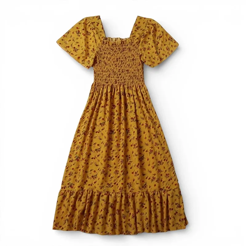 Erica W.Das Blumenkleid war perfekt für ein Picknick. Leicht genug für heiße Nachmittage und ich konnte mich frei drehen. Die Farben sind nach dem Waschen nicht verblasst.